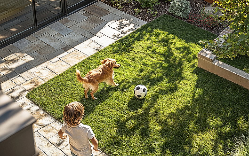 Turflory Grass pet turf is designed for furry friends, blending durability with safety. It resists pet claws, odors, and stains, while its drainage system handles accidents quickly. Non-toxic and allergen-free, it keeps pets healthy. No mowing, watering, or chemicals—cuts maintenance. Perfect for backyards or pet play areas, it stays lush year-round. Let pets run freely; enjoy a clean, hassle-free lawn with Turflory Grass.